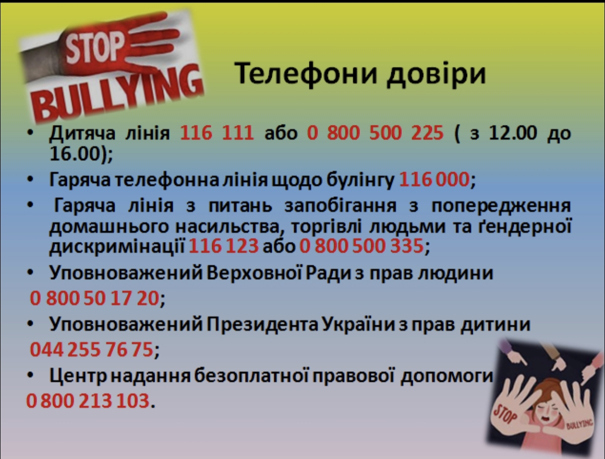 Корисна інформація для тих,хто страждає від булінгу