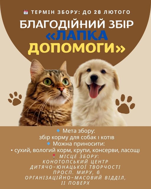 на підтримку притулку для безпритульних тварин у місті Конотоп