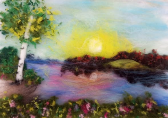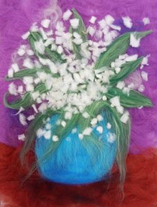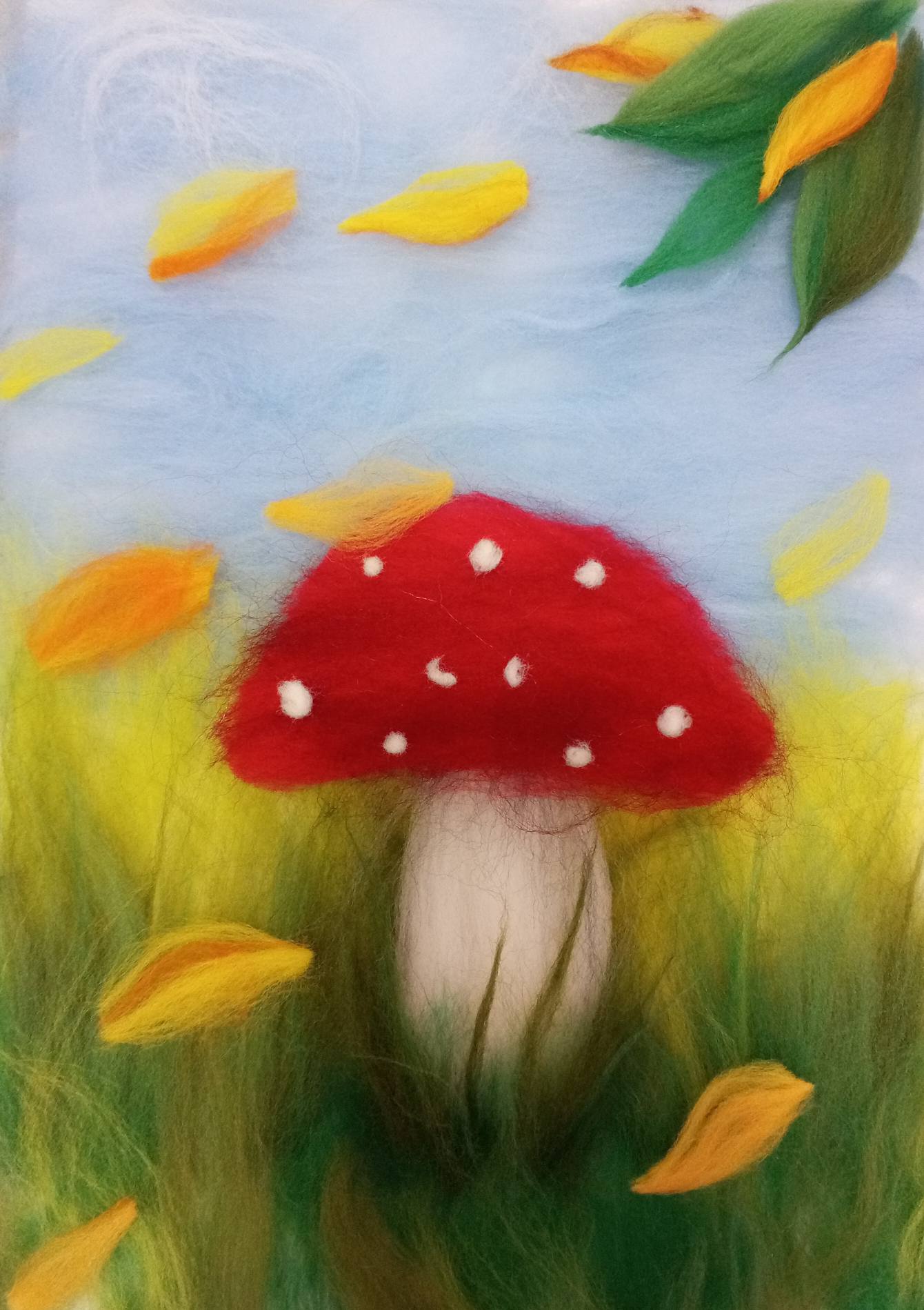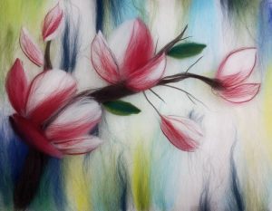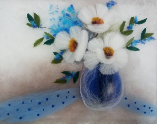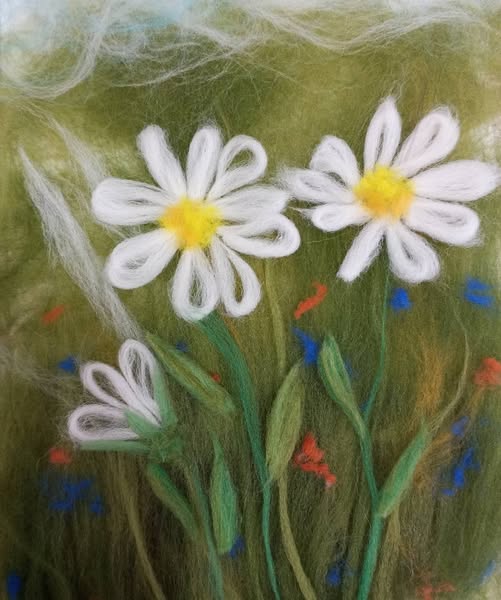 Уявіть собі полотно, створене не пензлем, а руками, що м’яко розкладають вовну, пасмо за пасмом. Така картина “живе”: змінюється залежно від освітлення, передає ніжність фактур і глибину кольору.