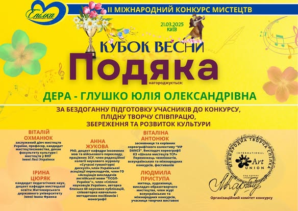 Ви продемонстрували, що мистецтво не має меж, що талант — це сила, а весна — найкращий час для творчого злету .