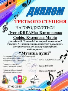 • ІІІ місце дует Марія Кулешова і Близнюкова Софія “Dream”